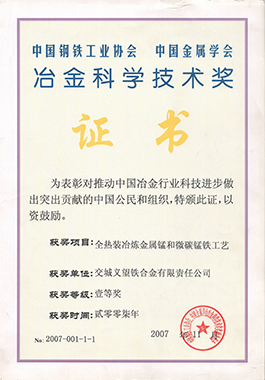 公司以學(xué)習(xí)、研究、創(chuàng)新為企業(yè)發(fā)展理念,不斷追求技術(shù)進(jìn)步,擁有專利49項(xiàng),公司核心技術(shù)“全熱裝冶煉金屬錳及微碳錳鐵新工藝”獲冶金科學(xué)技術(shù)獎一等獎,礦棉核心工藝“液態(tài)廢渣制取礦棉新工藝”獲冶金科學(xué)技術(shù)獎二等獎。2012年公司通過山西省高新技術(shù)企業(yè)認(rèn)定,《富錳渣電爐冶煉工藝》等三個創(chuàng)新項(xiàng)目獲山西省科學(xué)技術(shù)獎;公司始終關(guān)注行業(yè)技術(shù)進(jìn)步,積極參與行業(yè)標(biāo)準(zhǔn)的制修訂,多年來參與了《金屬錳》、《微碳錳鐵》、《錳氮合金》等多個國家、行業(yè)標(biāo)準(zhǔn)的制修訂工作,公司2013年主持修訂了《錳鐵》國家標(biāo)準(zhǔn)并獲準(zhǔn)頒布。
